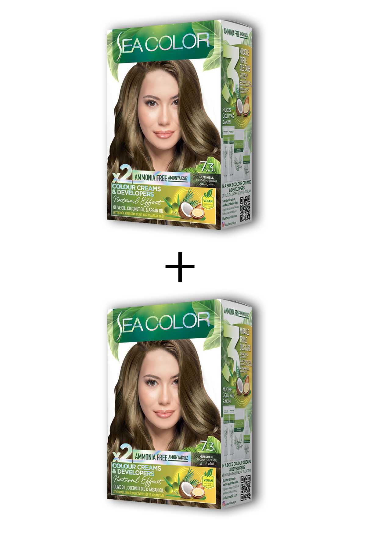 Sea Color 2X2 tüp Krem Saç Boyası Seti Fındık Kabuğu No:7.3