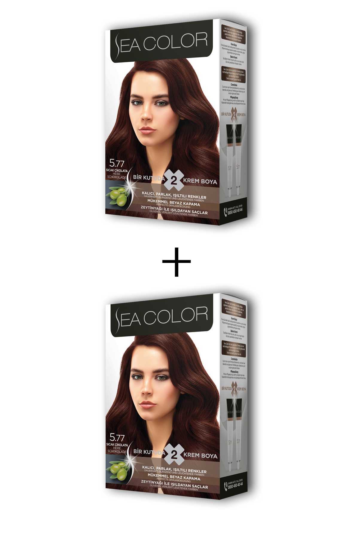 Sea Color 2X2 tüp Krem Saç Boyası Seti Sıcak Çikolata No:5.77