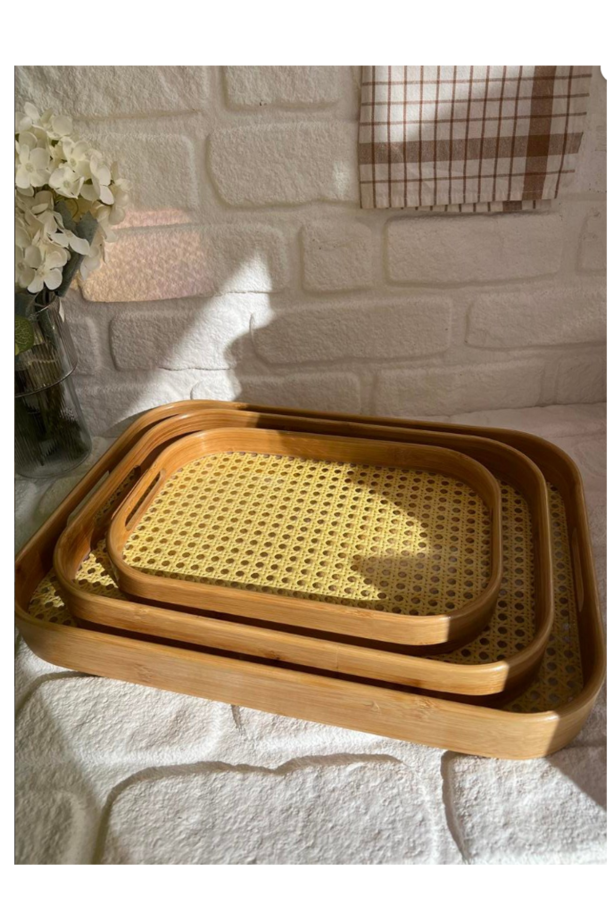 Set içeriği : 3'lü Bambu Hazeran Dikdörtgen Tepsi