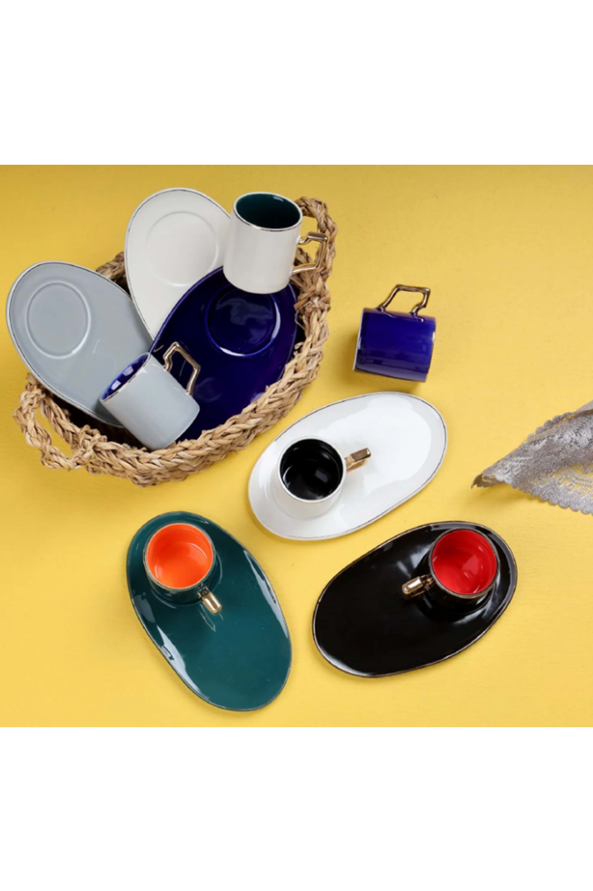 Paket İçeriği : 1 Adet 6 Kişilik Renkli Porselen Lokumluklu Kahve Fincan Takımı -3303
