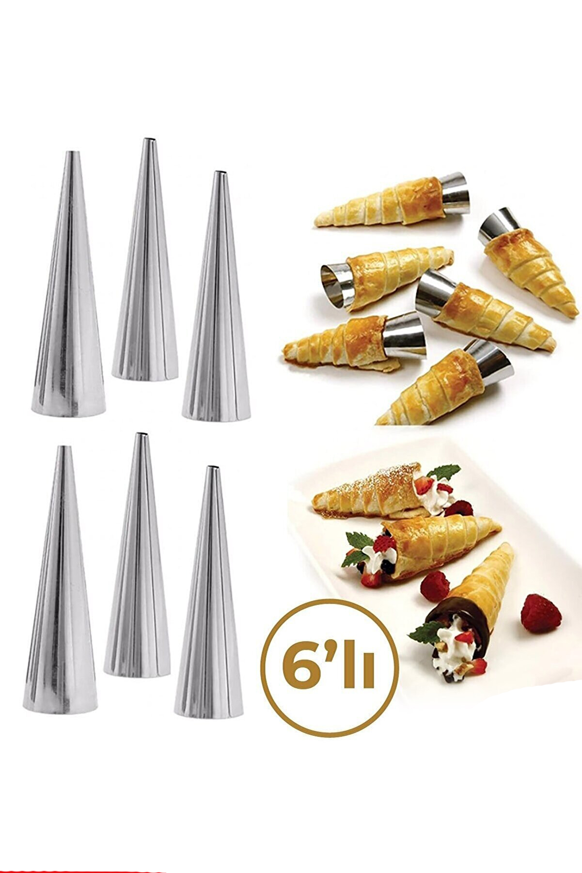 6'lı Paslanmaz Çelik Kornet Hamur Şekil Verici Külah Şekilli Korneo Kruvasan Kalıbı 6 Adet Kulah