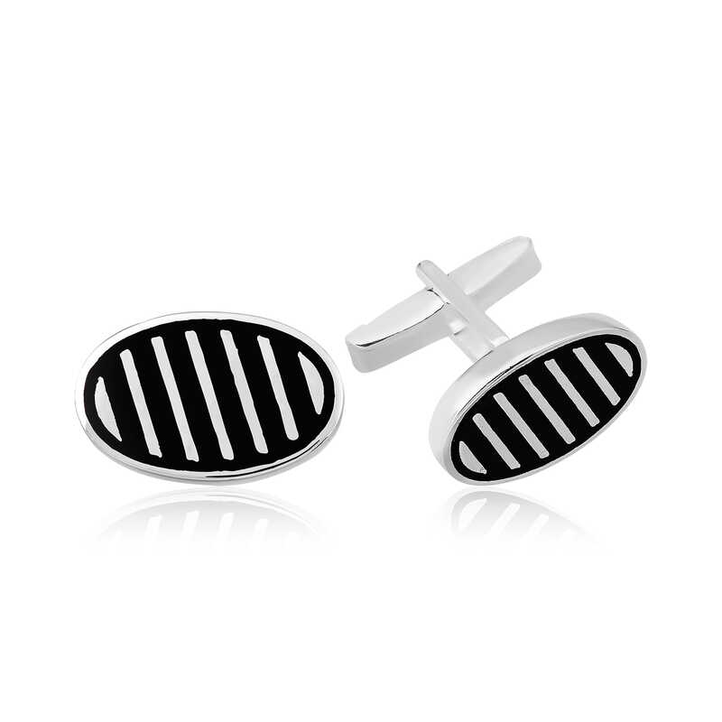 Gümüş Çapraz Çizgili Oval Kol Düğmesi