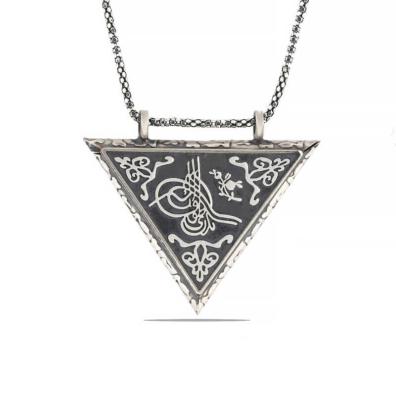 Gümüş Üçgen İçi Açılabilen Tuğra Muskalık Kolye