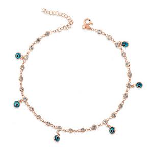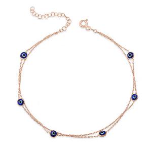 925 Ayar Gümüş Rose Çift Zincirli Nazar Halhal T6107