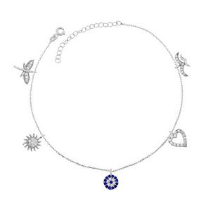 925 Ayar Gümüş Sıralı Zirkon Taşlı Nazarlı Rose Halhal T4753