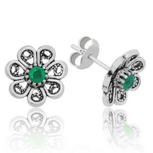 925 Ayar Gümüş Yeşil Telkari Çiçek Çivili Küpe Ea1160158