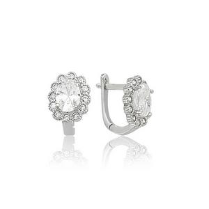 925 Ayar Gümüş Oval Taşlı Çiçek Küpe Ea0710030