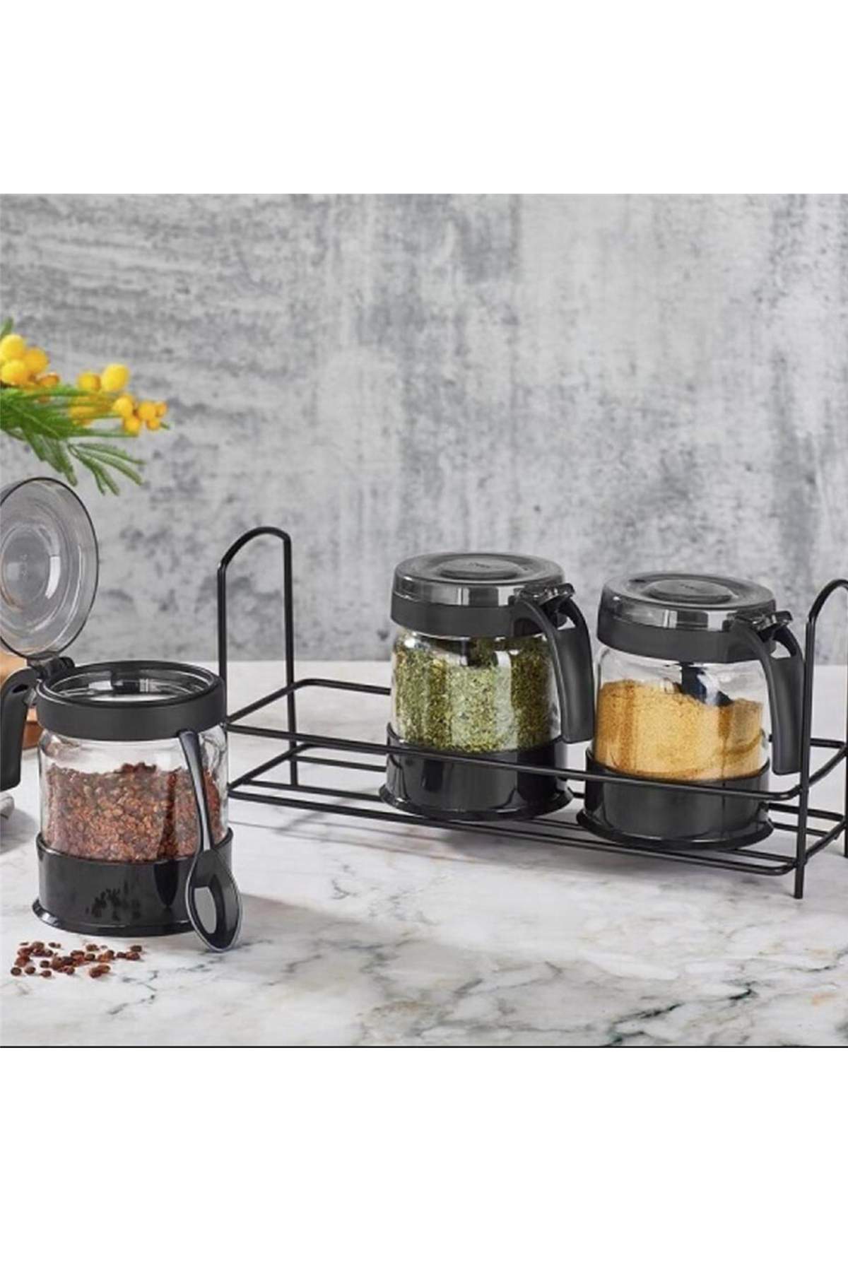 Baharatlık Seti Stantlı Cam 3 X 425 cc Kaşık Hediyeli Dekoratif