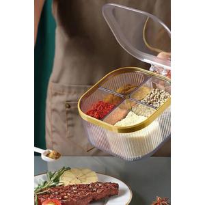 4 Bölmeli Gold Detaylı Açılır Kapanır Kapaklı Kaşıklı Baharatlık Saklama Kabı Düzenleyicilv295