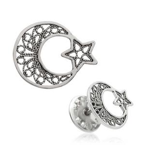 925 Ayar Gümüş Telkari Ay Yıldız Rozet Brs98121018