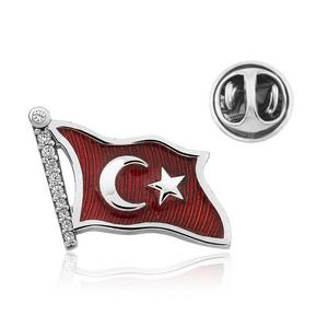 925 Ayar Gümüş Türk Bayrağı Rozet T4635