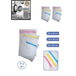 3'lü Çamaşır Yıkama Filesi Set Renkli Fermuarlı Pratik Çamaşır Yıkama Filesi Seti 3 Boy
