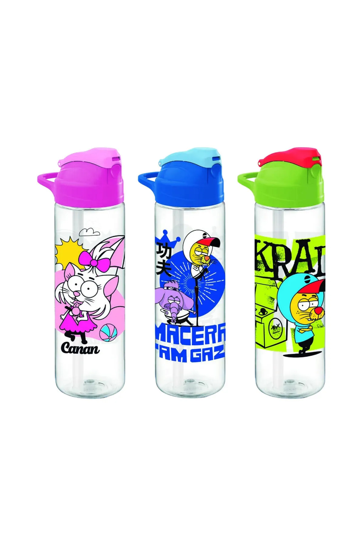 Gıpta Kral Şakir Pipetli Desenli Tritan Matara (suluk) 630 Cc (karışık Renk 1 Adet)