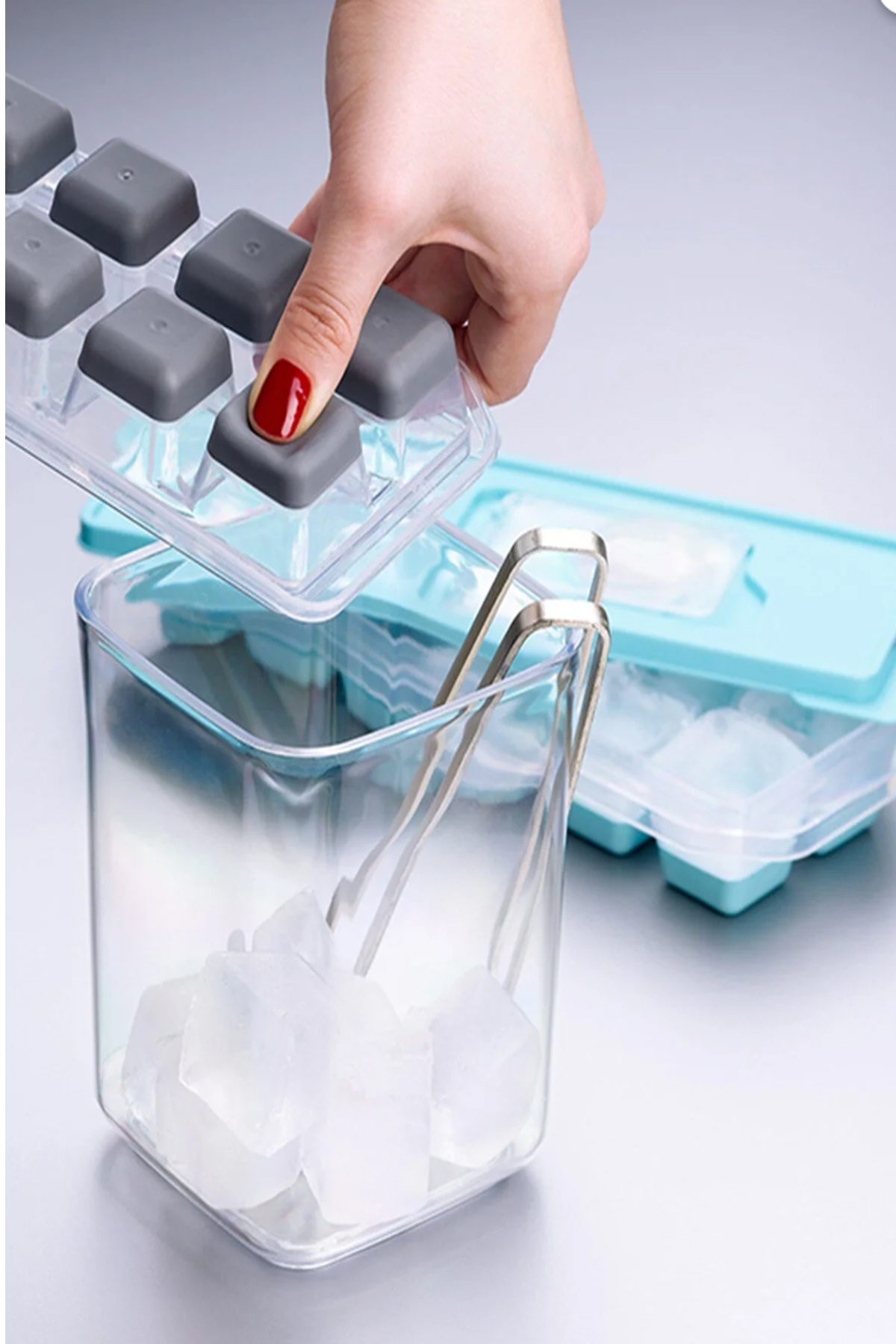 Alt slikon malzeme sayesinde parmak baskısı ile rahatça buz çıkarılır.
