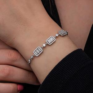 925 Ayar Gümüş Baget Taşlı Kadın Bileklik T8563