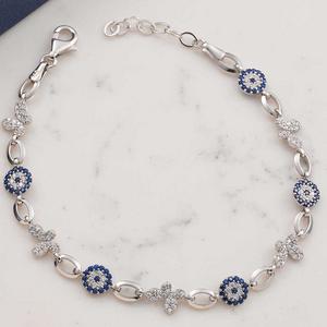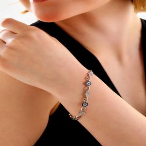 925 Ayar Gümüş Renkli Nazar Mineli Kadın Bileklik T8562