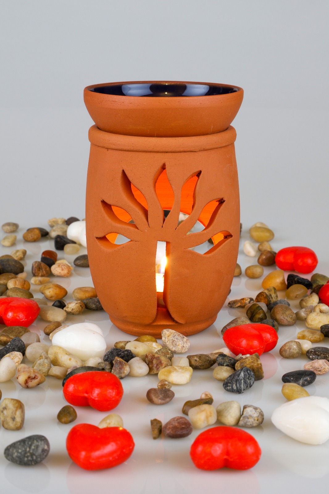 Aromaterapi yağlarıyla kullanılır, altına mum konur, üstüne isteğinize göre aromaterapi yağları,adaçayı veya tütsü koyabilirsiniz üst kısım kasesidir .
