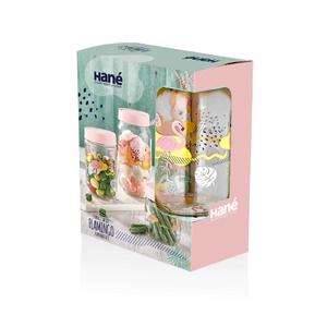 Hane 3'lü Flamingo Desenli Kavanoz Seti
