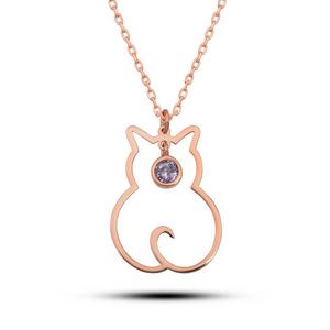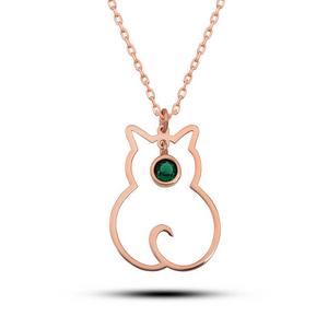 925 Ayar Gümüş Mayıs Ayı Doğum Taşı Kedi Kadın Kolye T8344