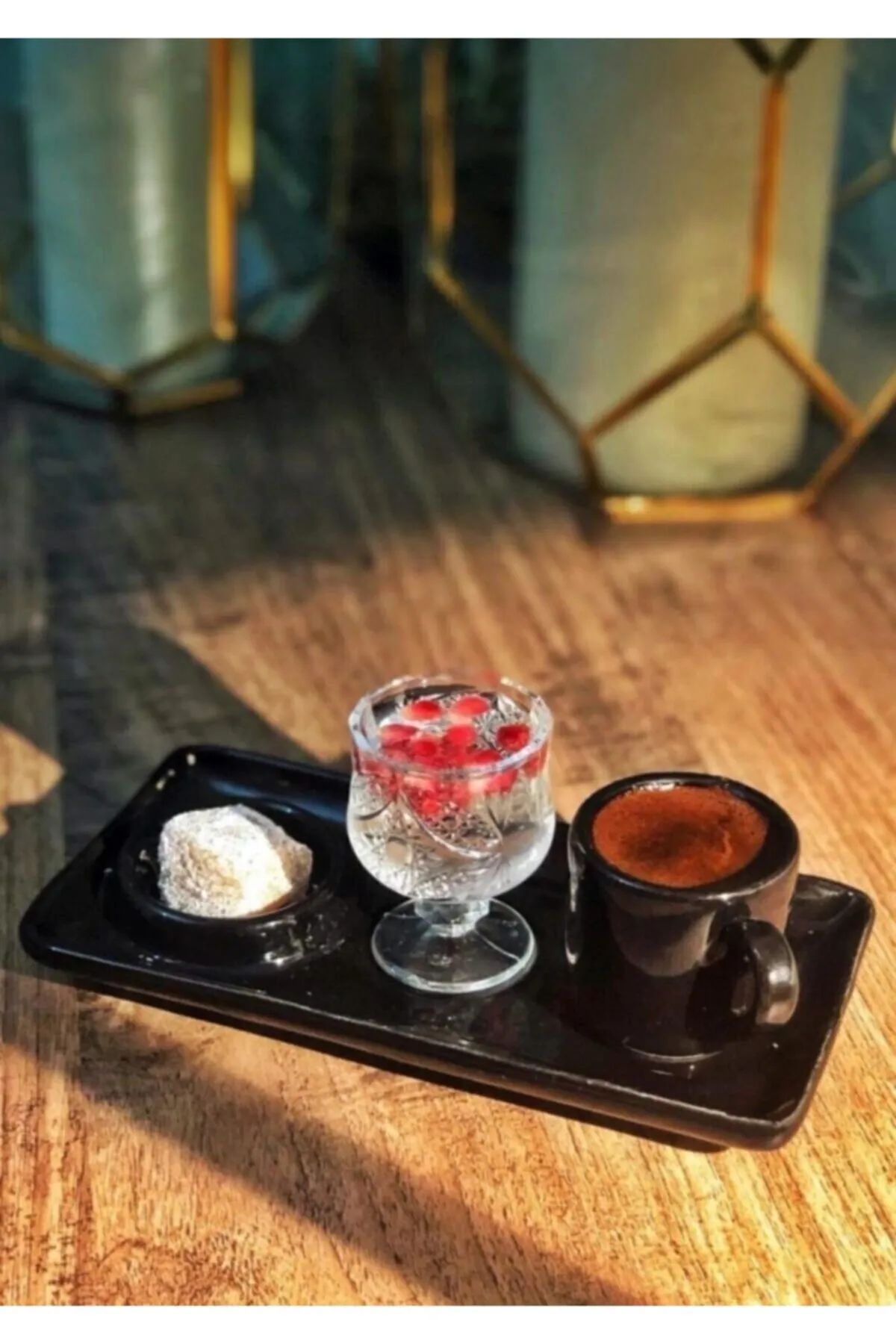 Set üç parça halinde gelmektedir bir kahve fincanı, bir adet kahve yanı bardağı ve sunum tabağı.