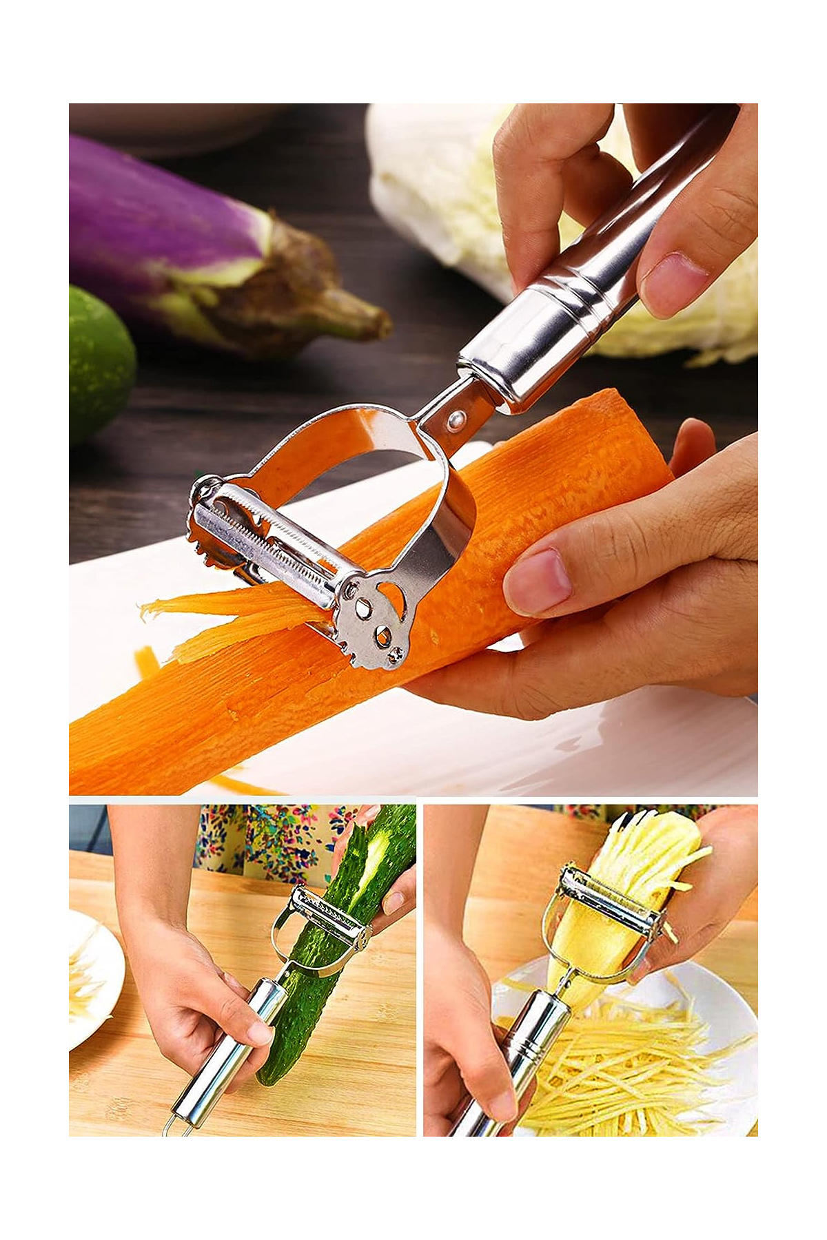 Patates soyacağı, yada jülyen sebze soyucu olarak her 2 yönünü de kullanabilirsiniz.