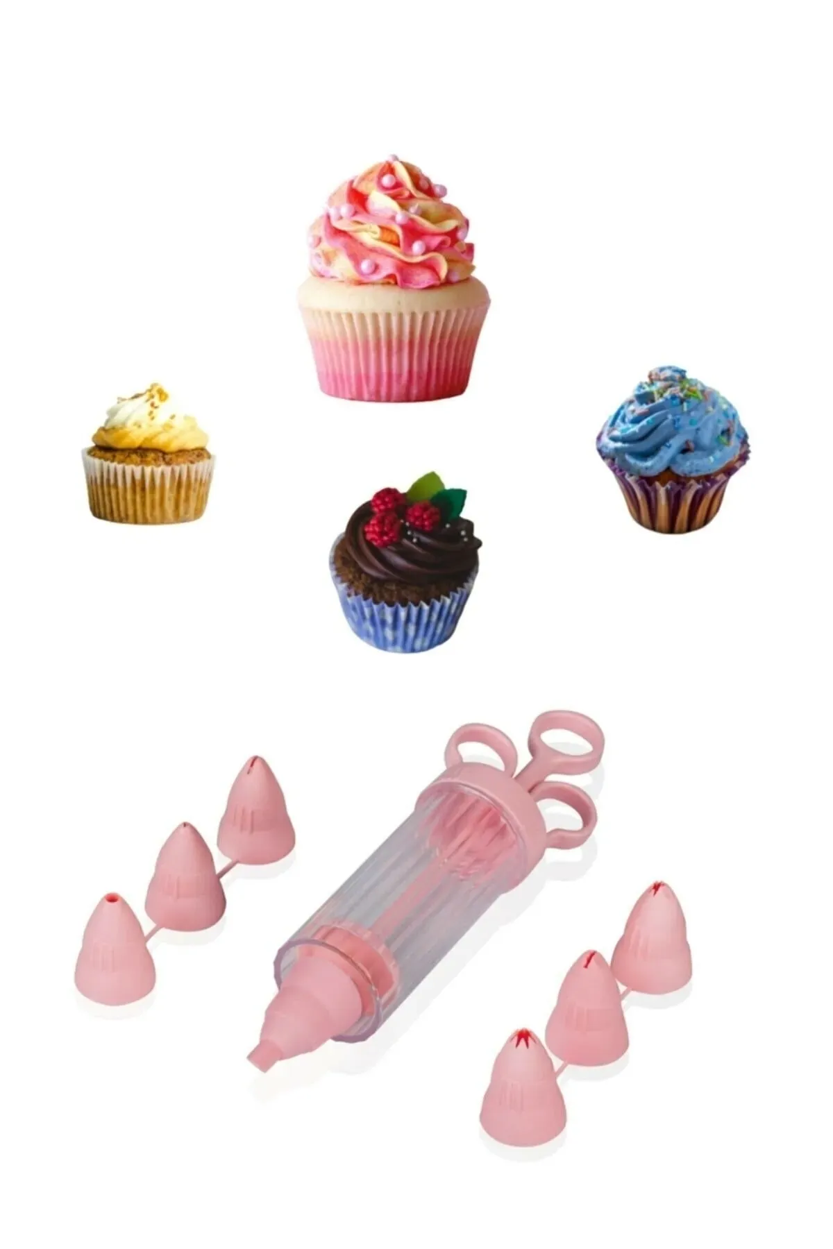Plastik Krema Pompası, Krem Şanti Sıkma Aleti Pasta Sıkacağı, Şırıngası 7 Farklı Başlık Aparatı -SC-257 8697512622572