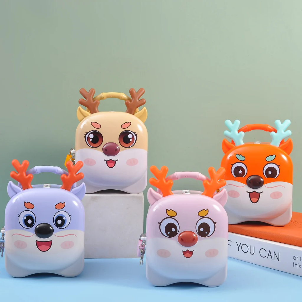 SEVİMLİ GEYİK KUMBARA “Çocuklarınızın Eğlenceli Tasarruf Arkadaşı!”Sevimli Geyik Kumbara, eşsiz tasarımı ve şık görünümü ile doğum günleri için en iyi hediye seçeneğidir. PP plastik malzemeden üretilmiştir ve kilitli anahtarlı bir mekanizmaya sahiptir. Çocuklarınızın eğlenceli bir şekilde para biriktirmelerine yardımcı olur. Bu kumbara, blister paketleme ile sunulmaktadır.Paket İçeriği1 adet sevimli geyik kumbara