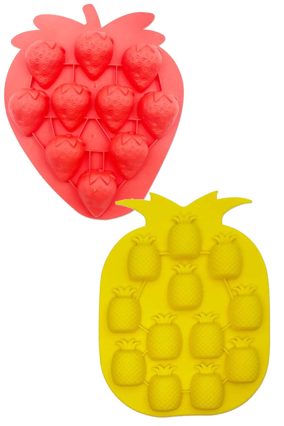 Silikon 3 Boyutlu Buz Kalıbı Çilek ve Ananas Figürlü 2 li Set