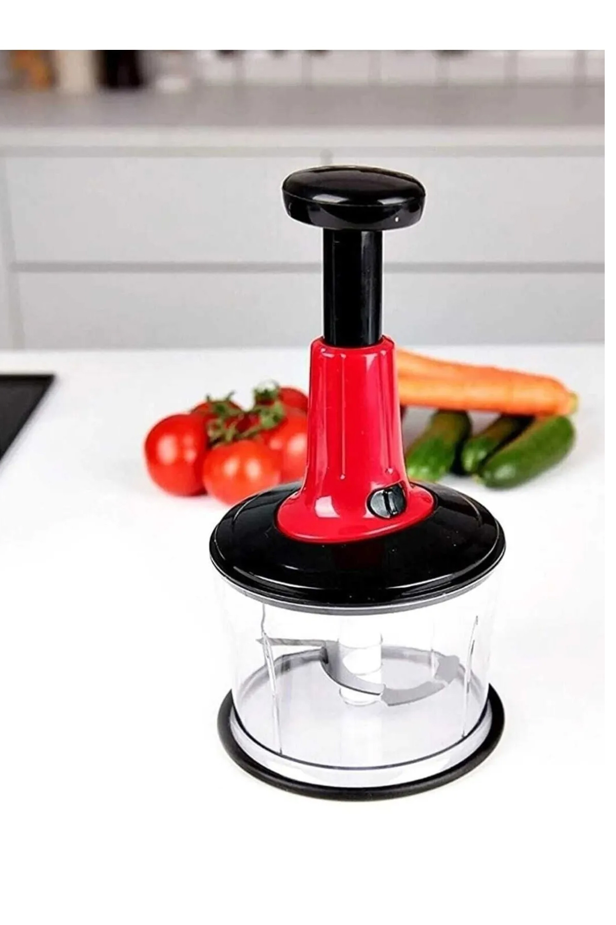 şekilde aşağıya itmenizi sağlar. Bu sayede, basit bir hareketle malzemelerinizi hızlıca doğrayabilir ve